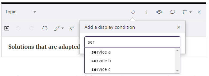 - In the 'Display Conditions' box, enter the keyword corresponding to the answer you want to link to the content and then click on 'Enter'.
