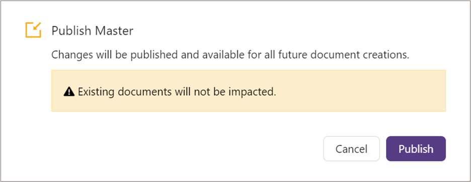 Publishing masters means making them available so that users can access them and create documents based on them. Only users belonging to the selected group will have access to the published master.