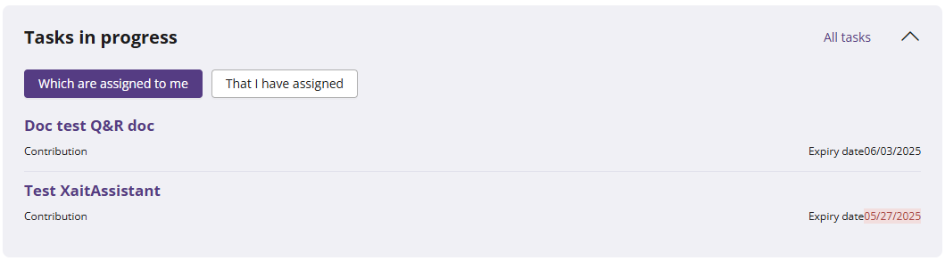 📌 The "Tasks in progress" section allows you to view collaborative tasks that are either assigned to you or that you have assigned.