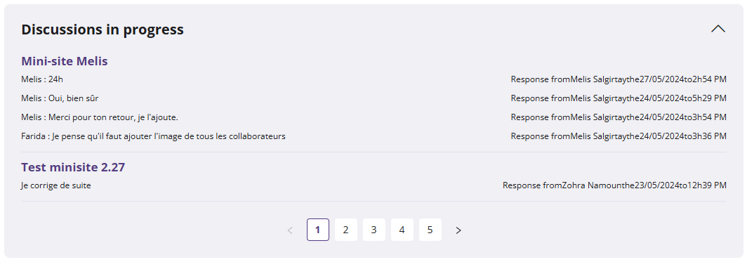 📌 The "Discussions in Progress" section shows active discussions related to the microsites you have access to.