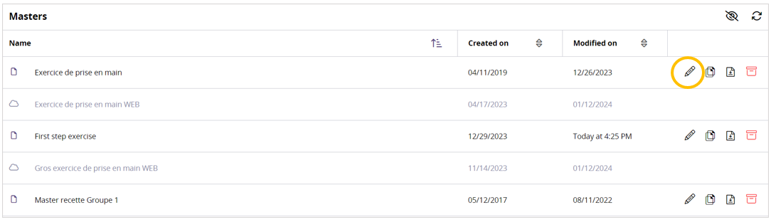- Click on the 'Masters' icon