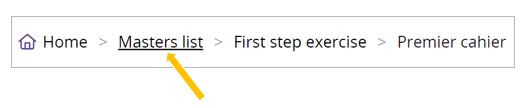 - In the breadcrumb trail at the top of the word processor page, click on ‘List of masters’.