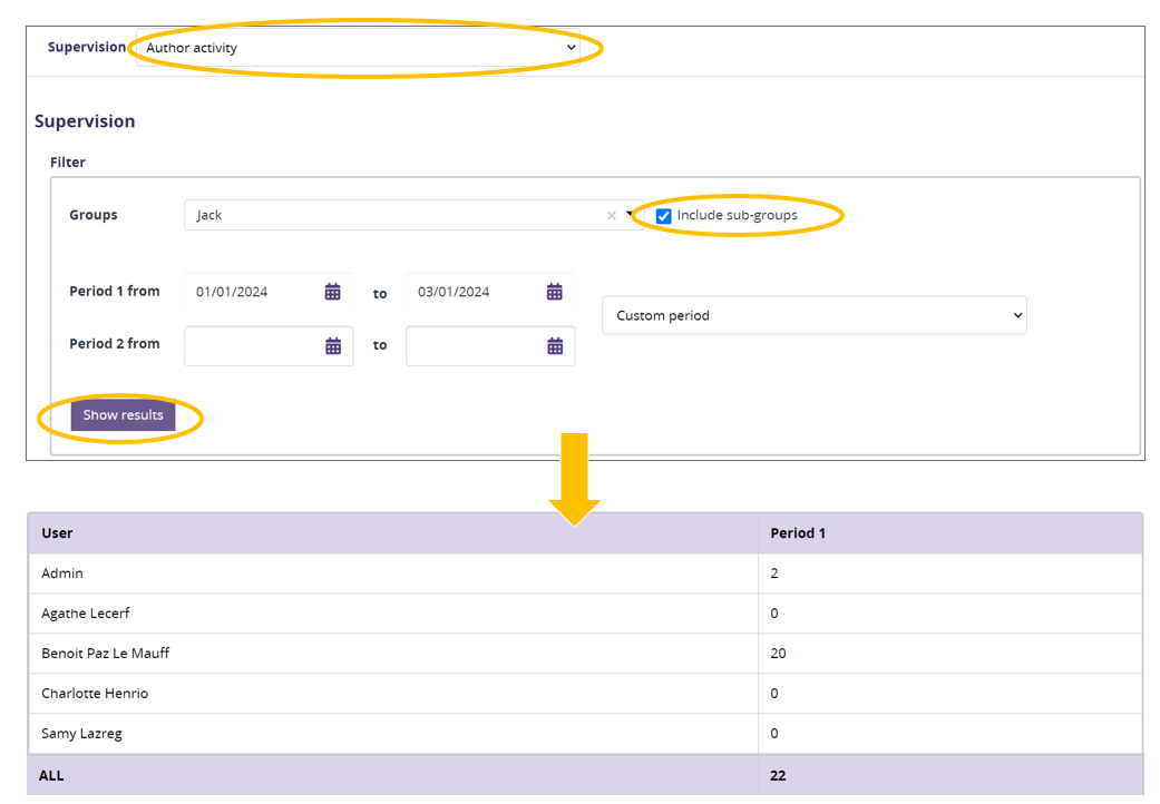 - Select 'Author activity' in the first dropdown list.