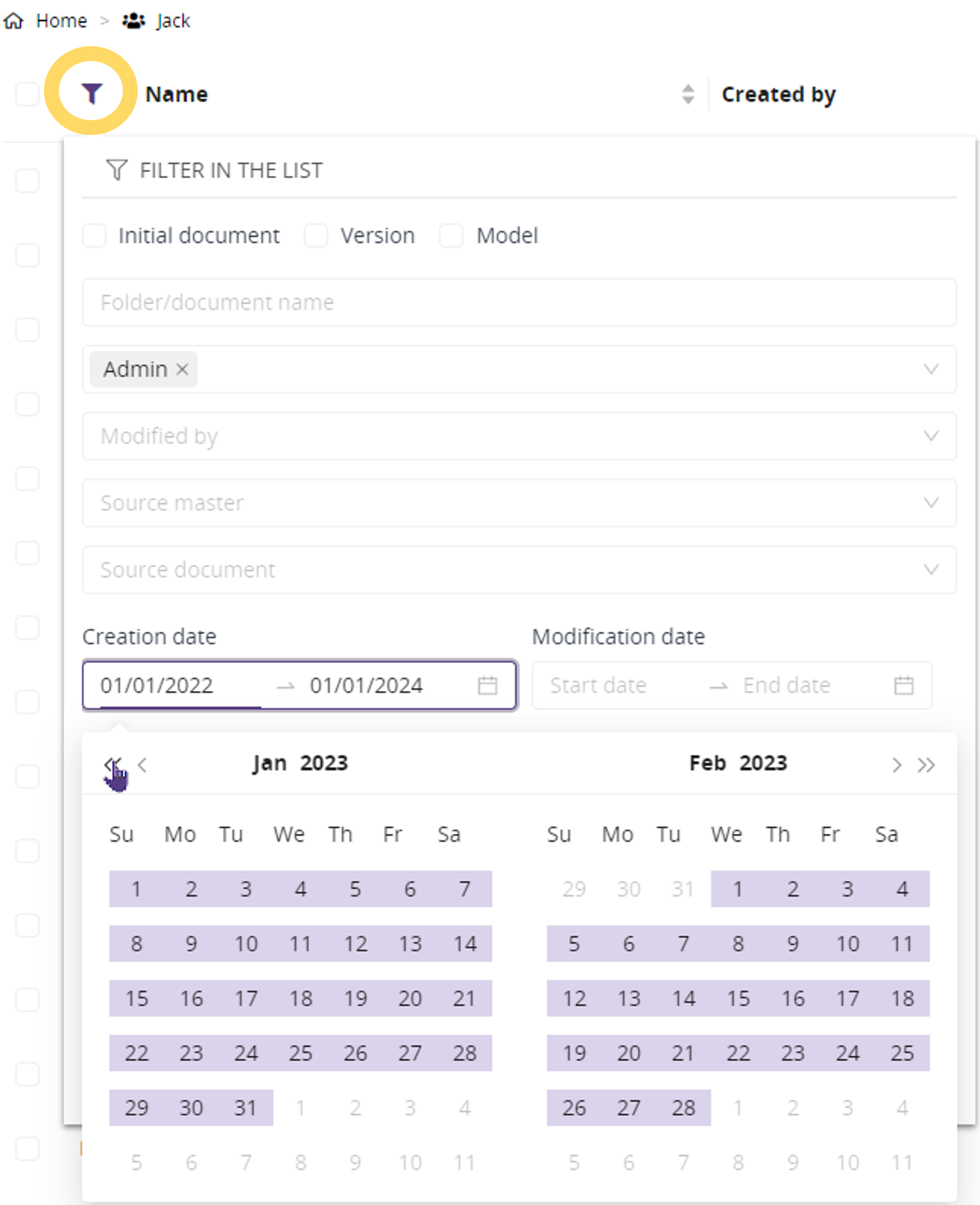 - Modified by: Select an author from the list of users who have access to the group in question.