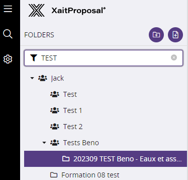 - The groups and folders containing the key-word(s) appear in the hierarchy list to the left highlighted in purple.