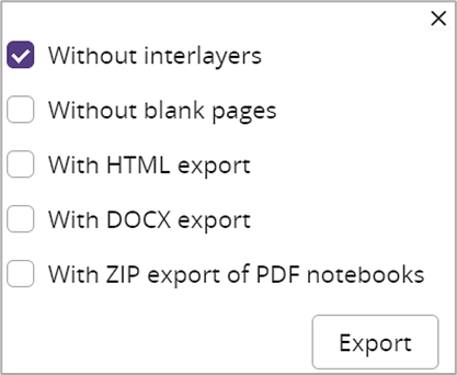 If you wish to remove the interlayers from one or more sections of your document, you can do so via the section export options: