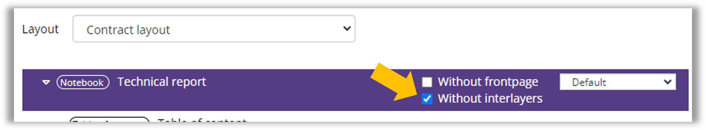 - The interlayers are absent for the notebooks for which the box 'Without interlayers' has been checked.
