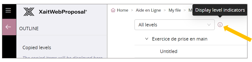 - Click on the 'Hide level indicators' icon