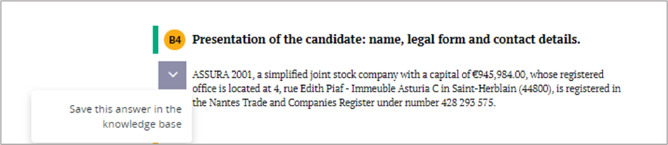 - Now click on the button to the left of the answer to this question, on 'Save this answer in the knowledge base' to capitalize the answer with the associated question.