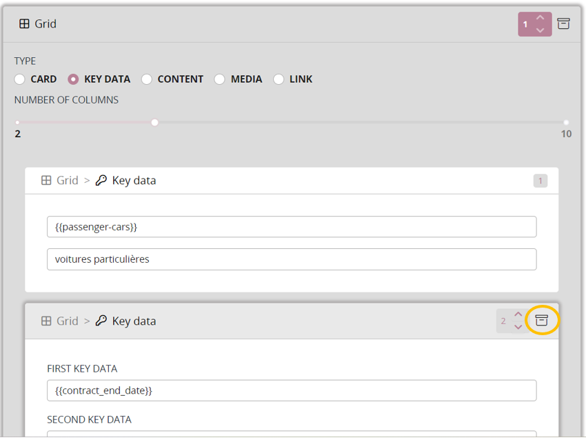 Example: Here, I want to archive the second key data, I click on the 'archive' icon to remove it from the component.