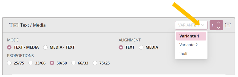 To change the color variant of your component, click on the drop-down list at the top right of the component: