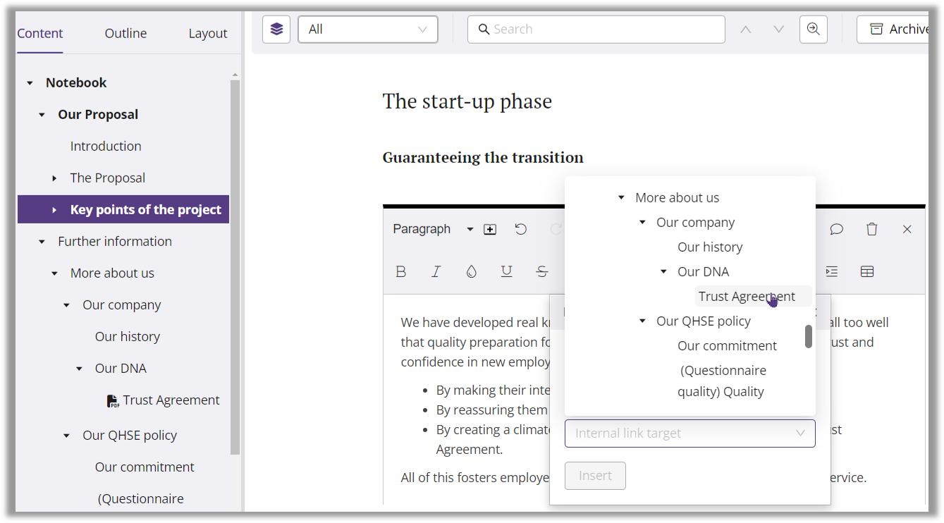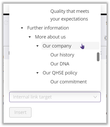 In the next field, a drop-down menu shows you the entire existing structure of your document. Here you can select