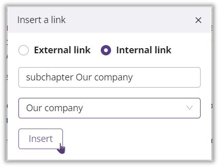 Once you've selected your reference, click Insert and your internal link will appear above the linked text, which will be underlined and colored.