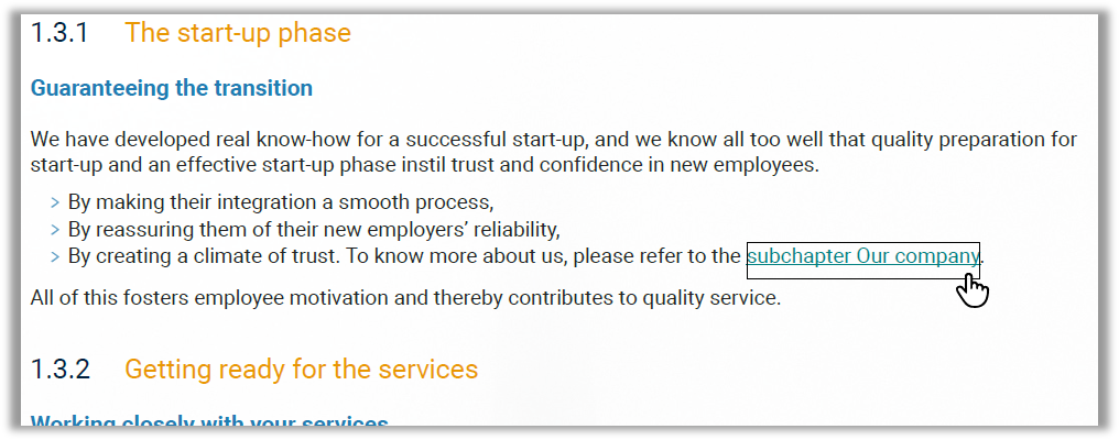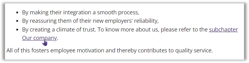 When your document is exported as a PDF, you'll find the internal link associated with the text, underlined or squared and colored: