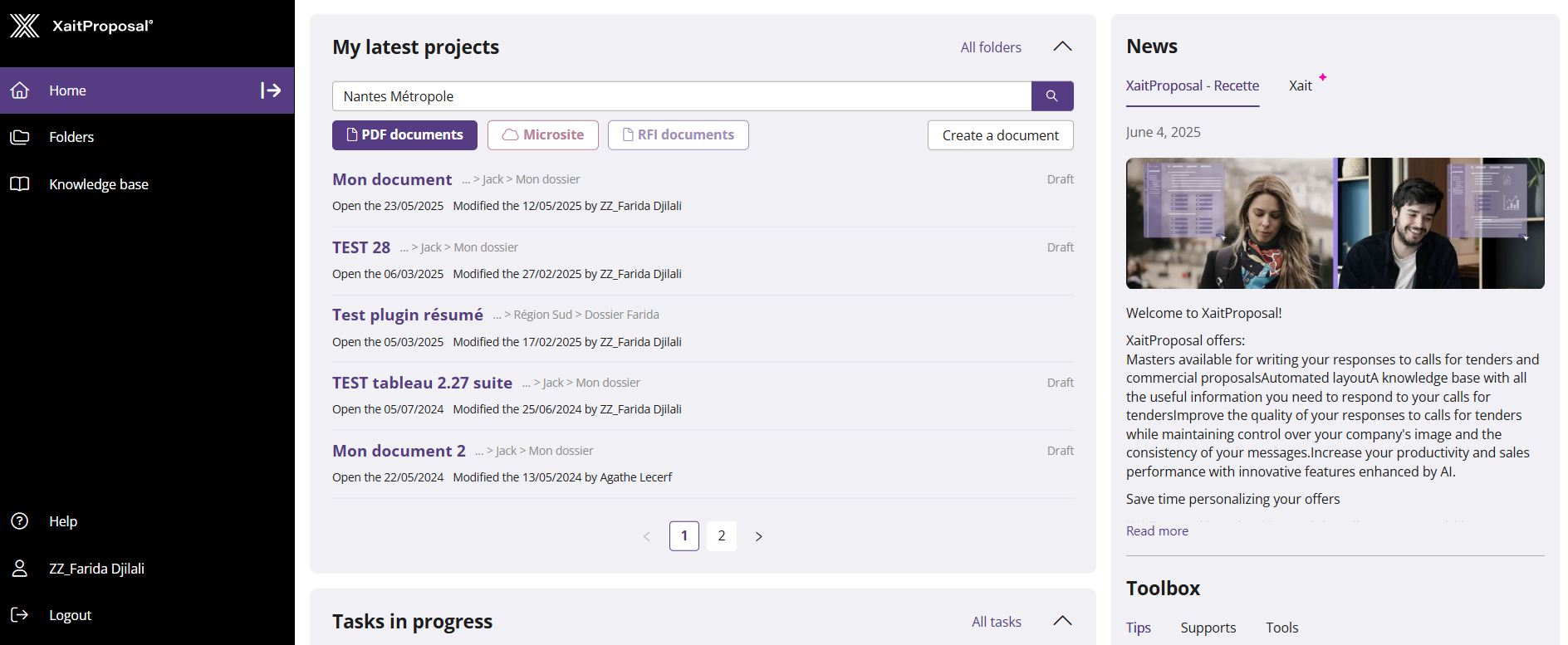 Need to find a document, such as an old technical brief? Since version 2.29, XaitProposal allows you to search directly from the home page.