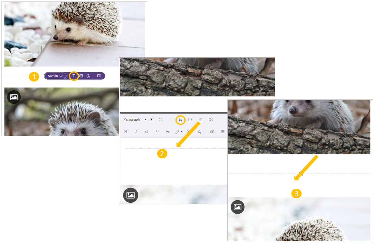 - Click on the 'Add a block of text' button in the floating menu: a 'paragraph' type block is created.