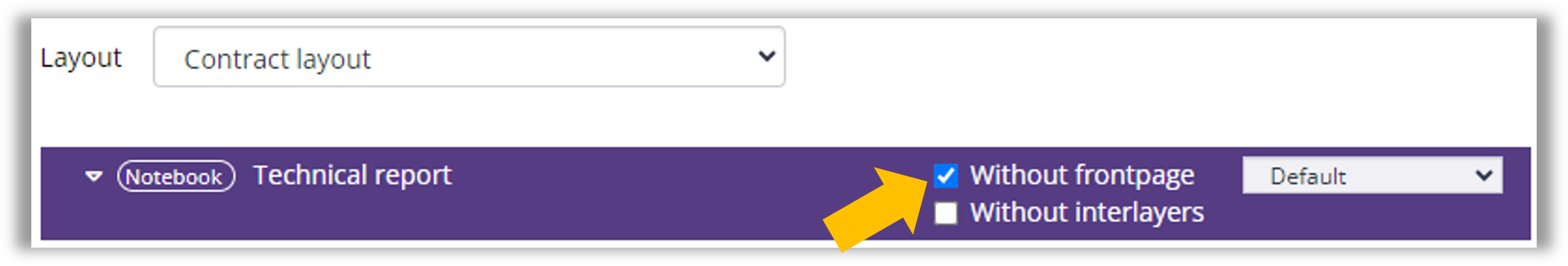 - The notebooks for which the box 'Without frontpage' has been checked are generated without cover.