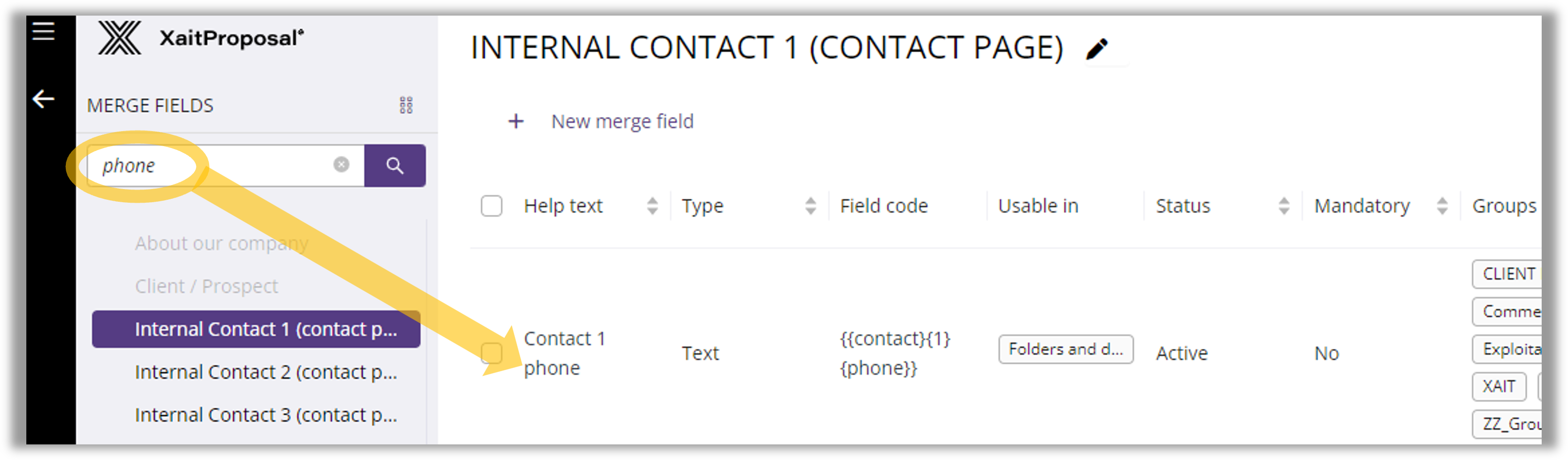 For example, here the merge fields from the category "Client / Prospect" have been filtered to show only the active merge fields that contain the term "cover" in the help text: