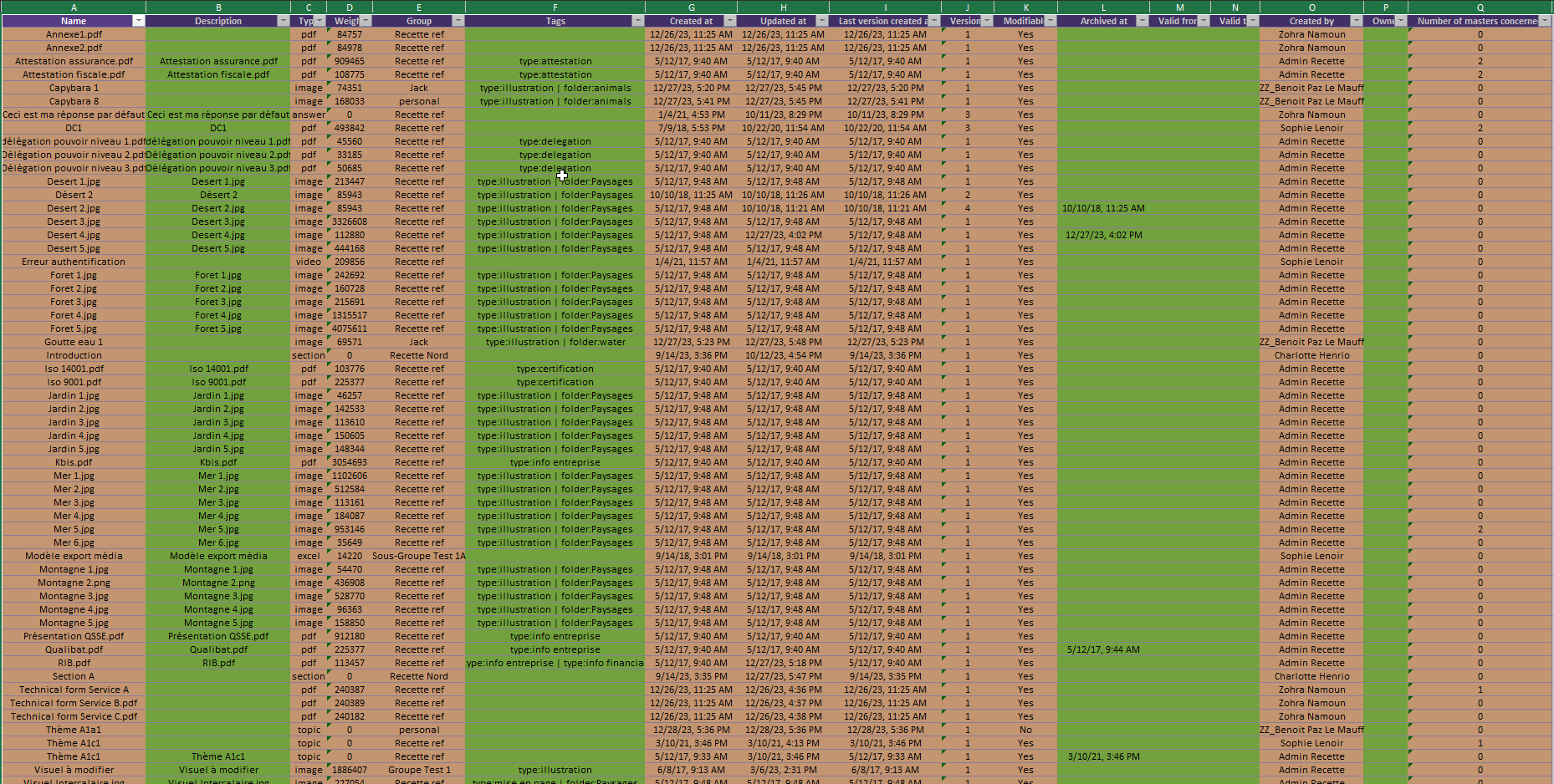 An Excel file whose name begins with ‘Export-media’ will download. It lists all the media (archived and current) found in the knowledge base under all groups.