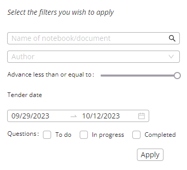 - Click on the title of the notebook (1st column) to go directly to the questionnaire.