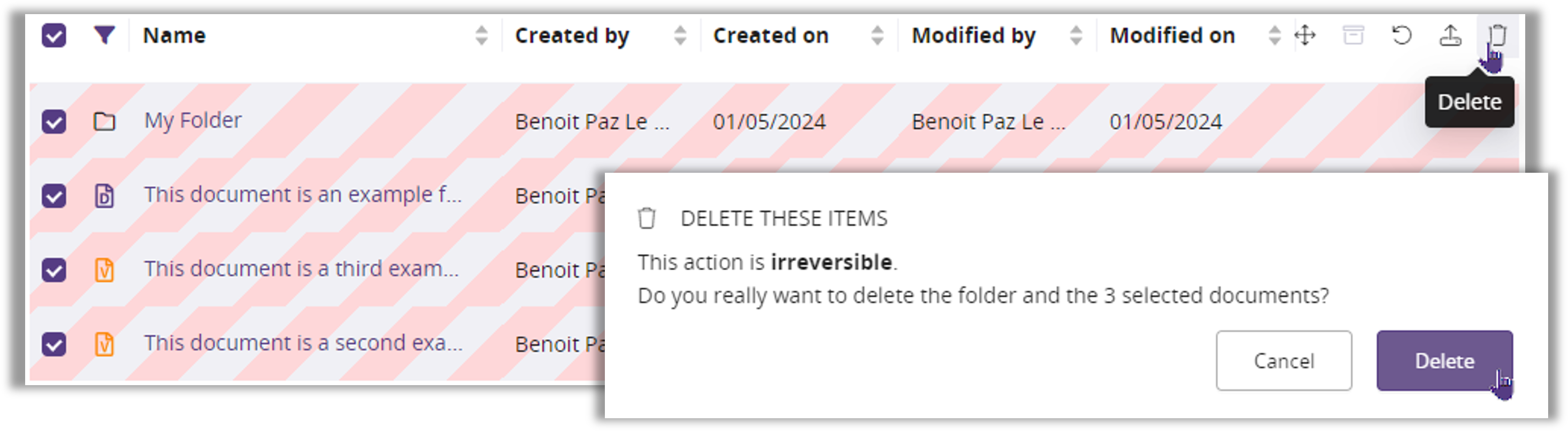 - Permanently deleting multiple documents (for Supervisors and Content Managers)