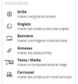 - Le composant Contenu Riche pour l'insertion d'un texte ou d'une image.