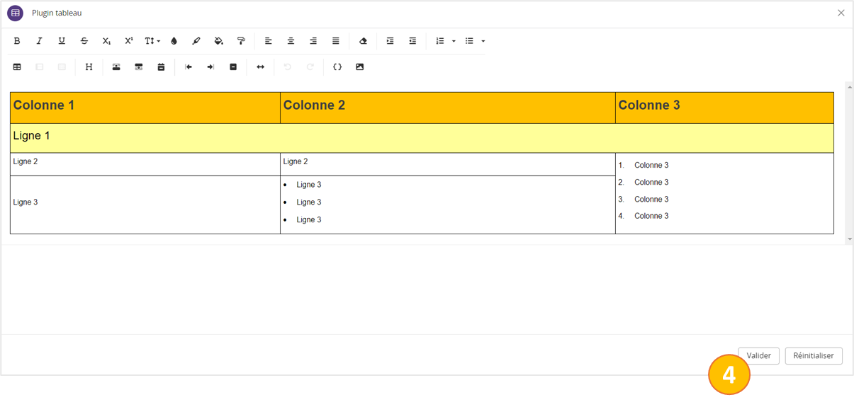 - Le tableau est collé et sa mise en forme est conservée à l'identique. Cliquez sur "Valider" pour confirmer la création du tableau