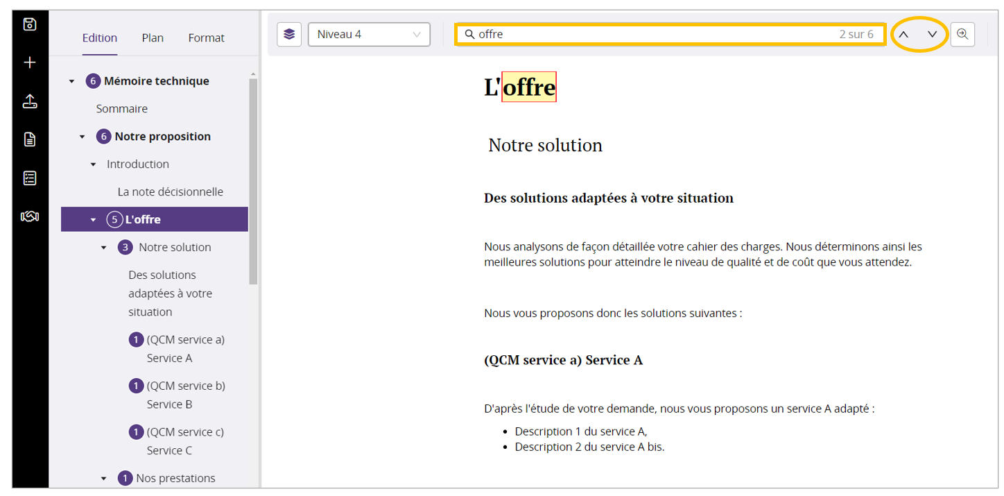 - Les mots recherchés s'affichent en surligné jaune dans le traitement de texte.
