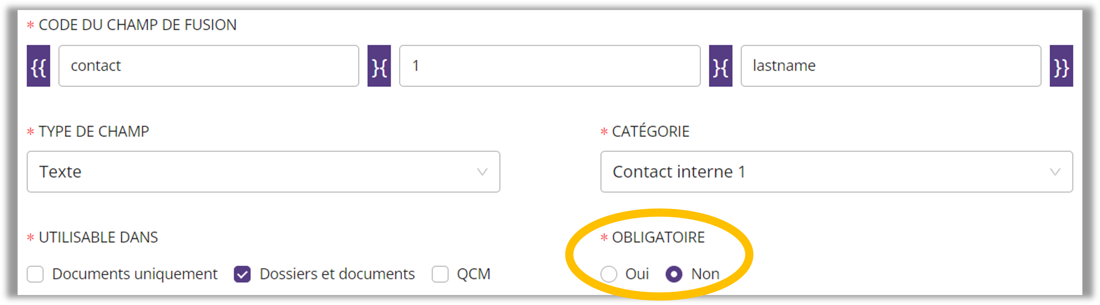Comment rendre un champ de fusion obligatoire ?