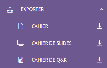 - Dans le menu de gauche, cliquez sur "Exporter", puis cliquez sur "Cahier de slides".