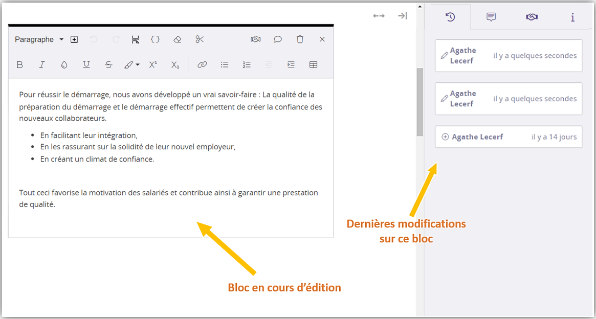 permet de suivre les modifications effectuées sur le bloc ouvert.
