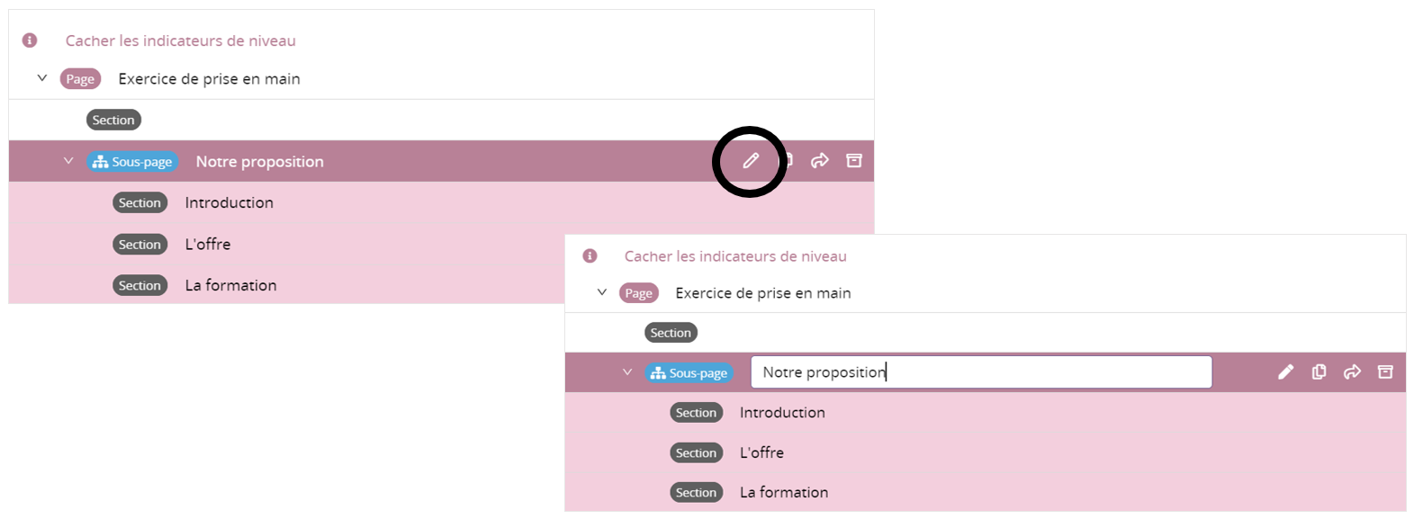 Renommer un niveau