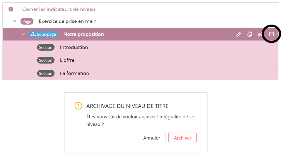 - L'archivage d'un niveau dans le mode plan prend en compte tous les niveaux qui en dépendent.