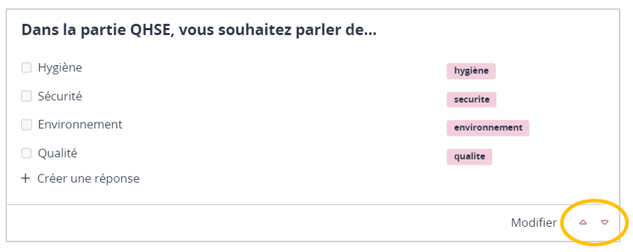 Dans la partie centrale, cliquez sur les flèches en dessous de la question que vous souhaitez déplacer :