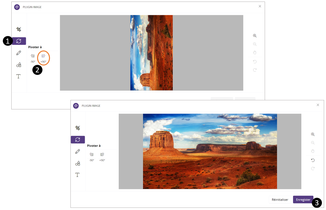 - Vous pouvez faire pivoter l'image à 90°, dans le sens horaire ou anti-horaire.