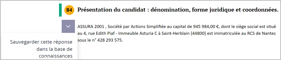 Cette réponse est capitalisée dans votre Espace personnel. Elle vous sera alors suggérée, à vous seul, lors de la réponse à de nouvelles questions similaires.