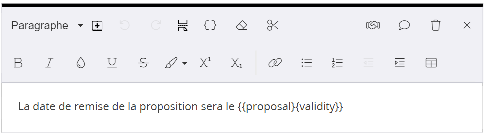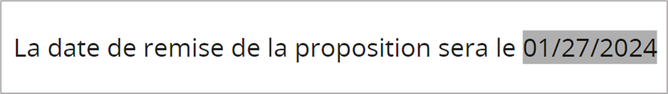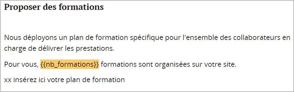 - Dans votre traitement texte en mode non-focus, c'est-à-dire sans cliquer sur le bloc de texte en question, la valeur s'affiche automatiquement dans votre traitement de texte (comme elle sera à l'export) et est surlignée en grisée :