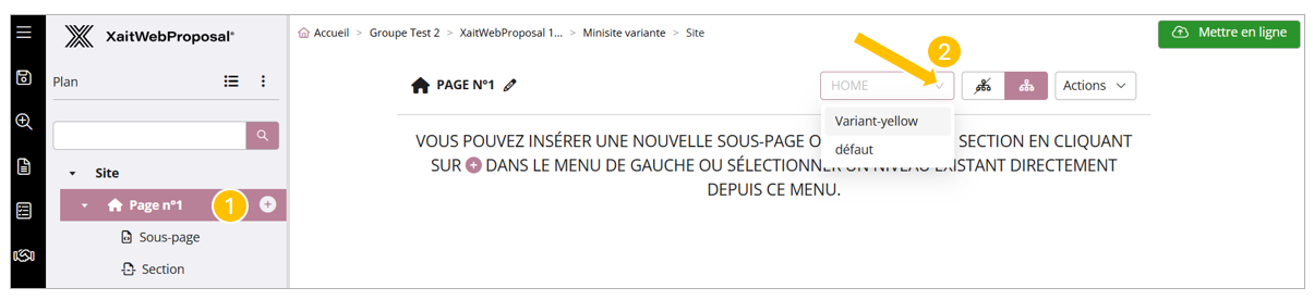 Il est possible d'appliquer une variante de couleur sur vos pages, sous pages ou vos sections (établit en fonction de votre template web).
