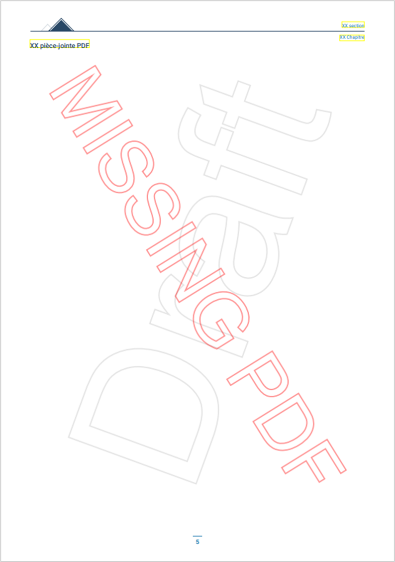 - Sur l’export PDF, les XX sont encadrés en jaune, et si une pièce jointe PDF est vide vous verrez la mention “MISSING PDF” en rouge :