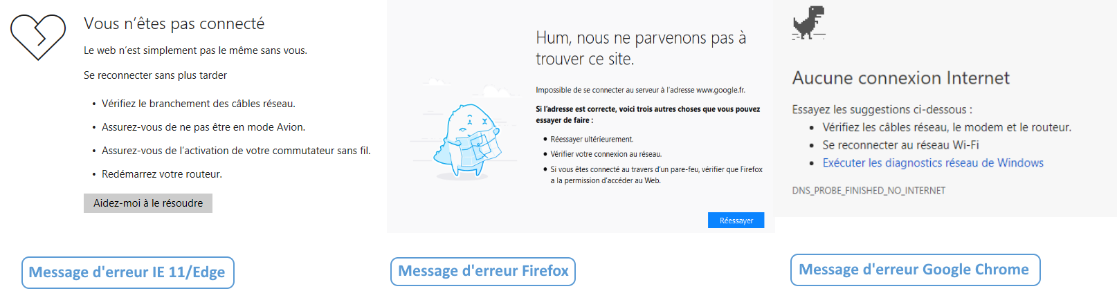 Reportez vous au titre 3 de cet article si votre navigateur affiche l'un des messages ci-dessous :