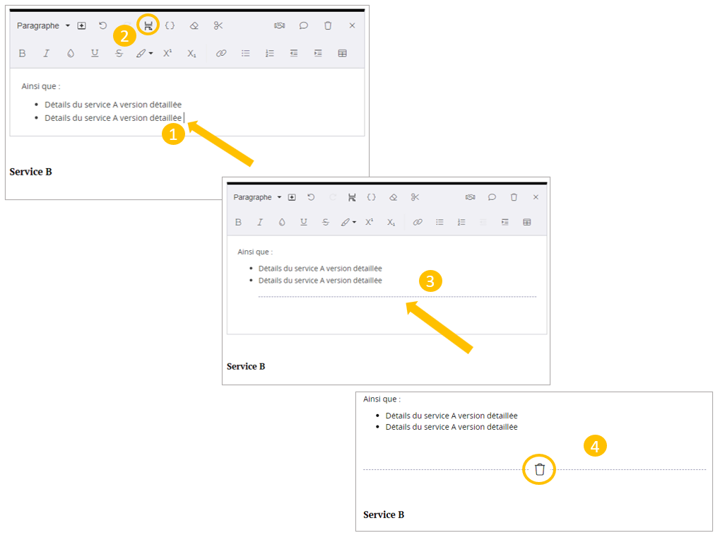 NB : En cas d'erreur, vous pouvez supprimer le saut de page en cliquant sur le bouton 'Supprimer' au milieu de la ligne pointillée.