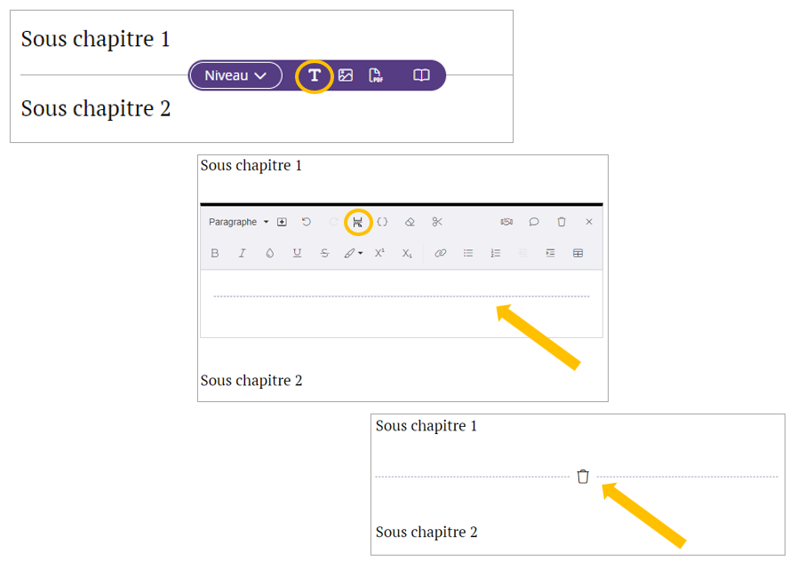 - Dans le traitement de texte, colonne centrale, cliquez sur le paragraphe devant précéder le saut de page afin d'afficher la barre d'outils.
