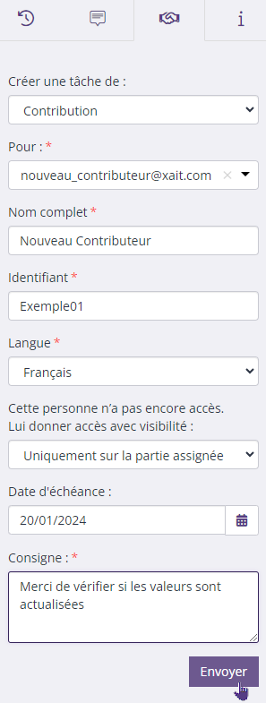 6. Dans le champ ‘Consigne', saisissez votre message à l'attention du contributeur.