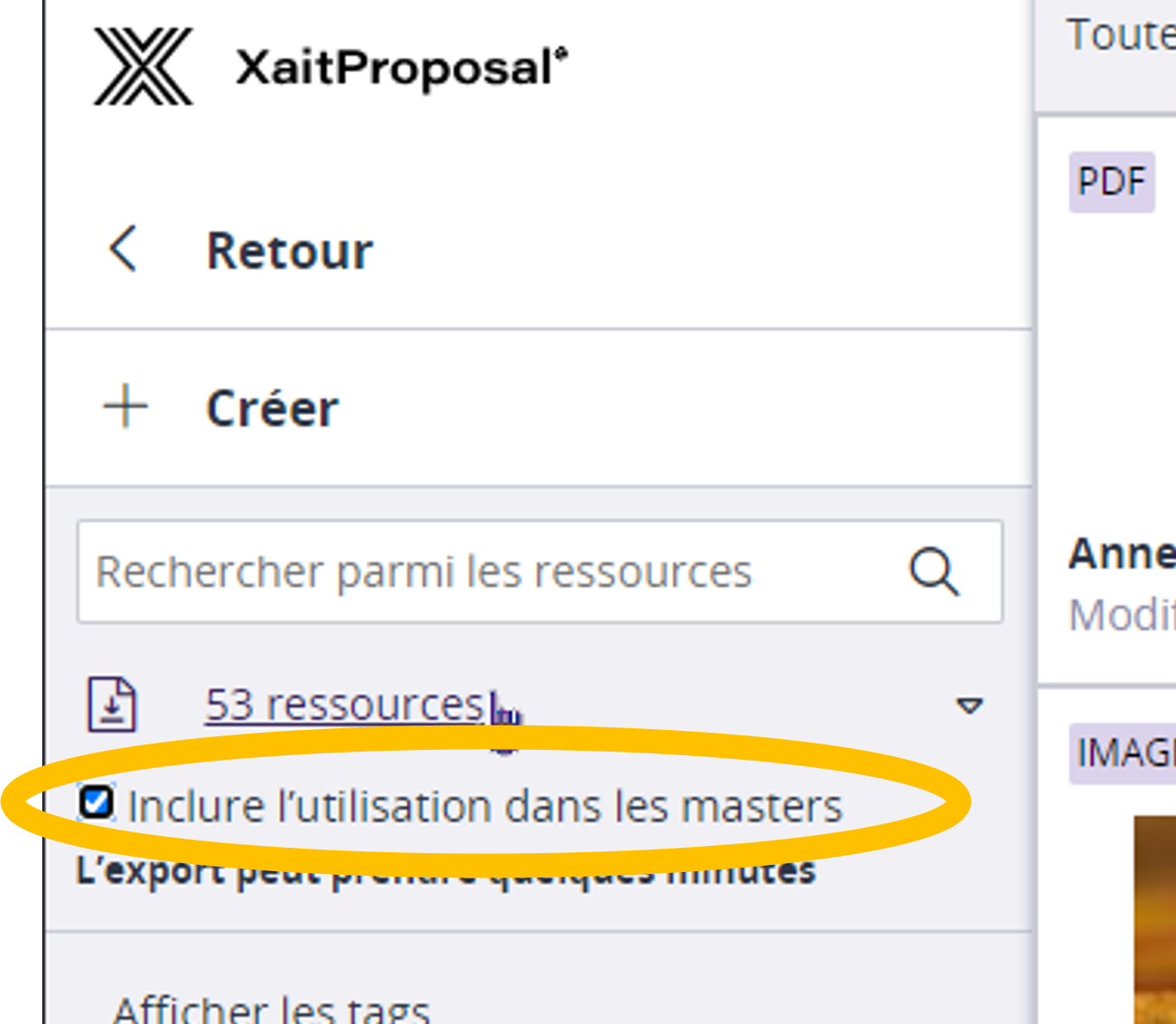 Cliquez sur le nombre total de médias, affiché en haut de la colonne de gauche, pour exporter la liste des médias disponibles dans la KB.
