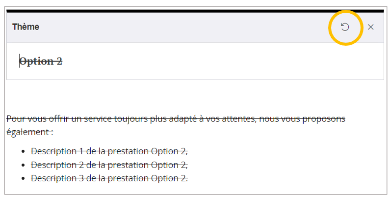 - si je restaure le titre de thème, tous les paragraphes associés seront également restaurés.