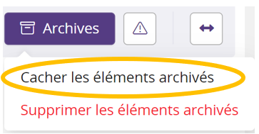 Une fois vos contenus restaurés, nous vous conseillons de cliquer sur 'Archives' puis sur 'Cacher les éléments archivés' pour revenir à l'affichage normal.