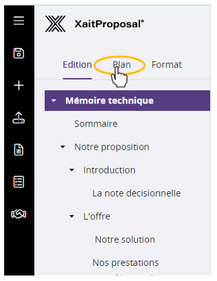 - En haut du menu de gauche, cliquez sur l'onglet 'Plan'