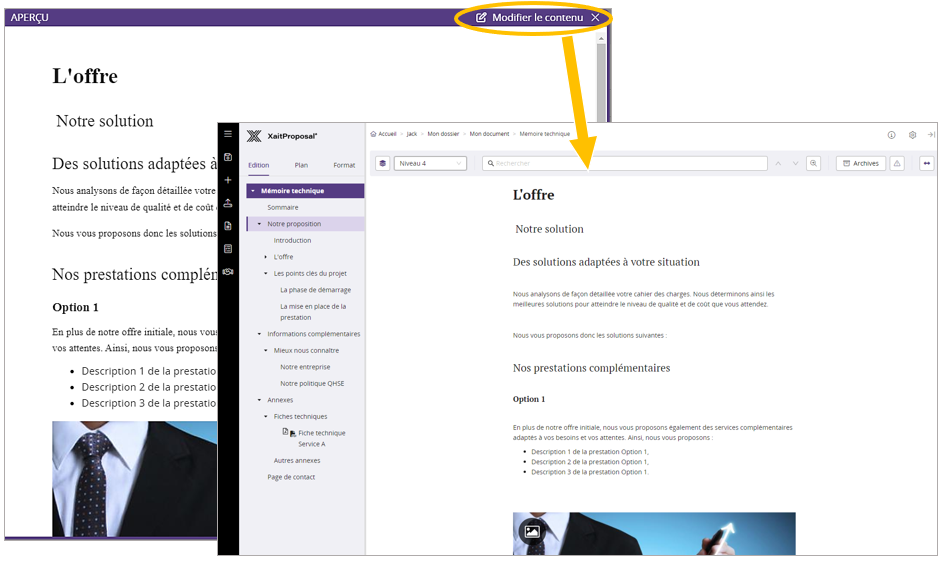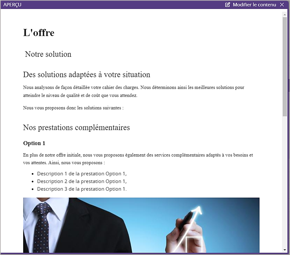 - En haut à droite de cette fenêtre de prévisualisation, cliquez sur 'Modifier le contenu'.